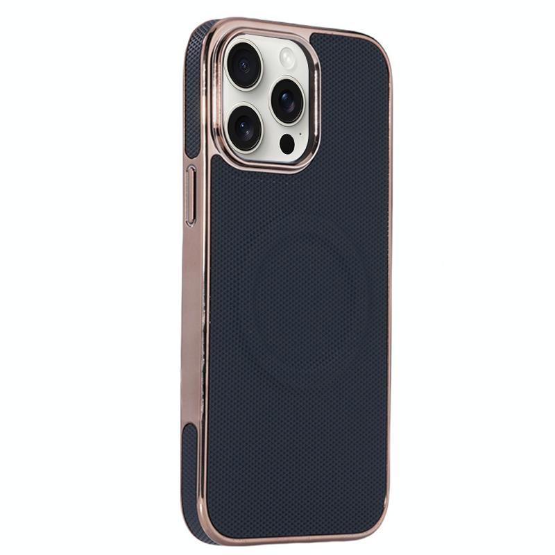 For iPhone 12 Pro Electroplating Soft Side Sticker Leather MagSafe Phone Case(Black)