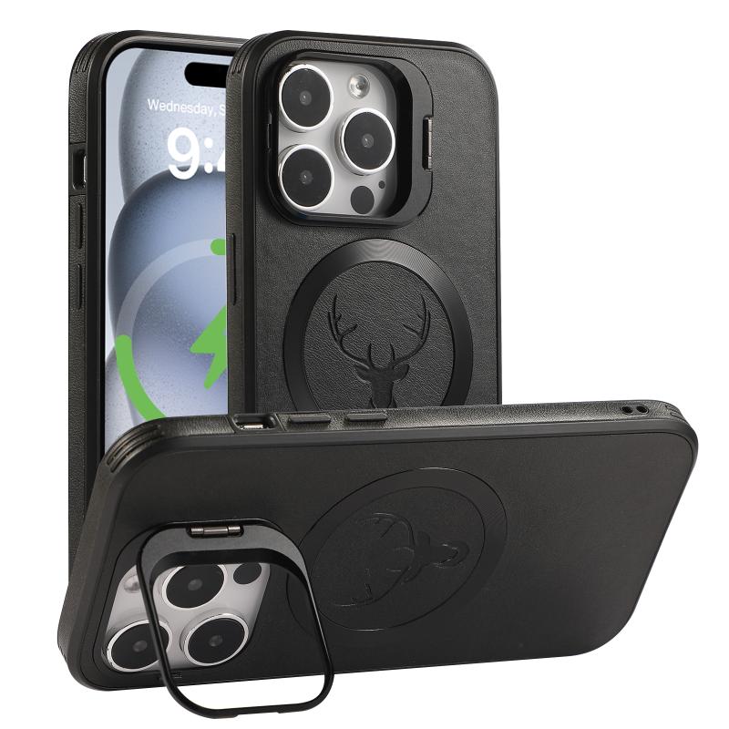 For iPhone 12 Pro Elk Lens Holder Magsafe Shockproof Phone Case(Black)