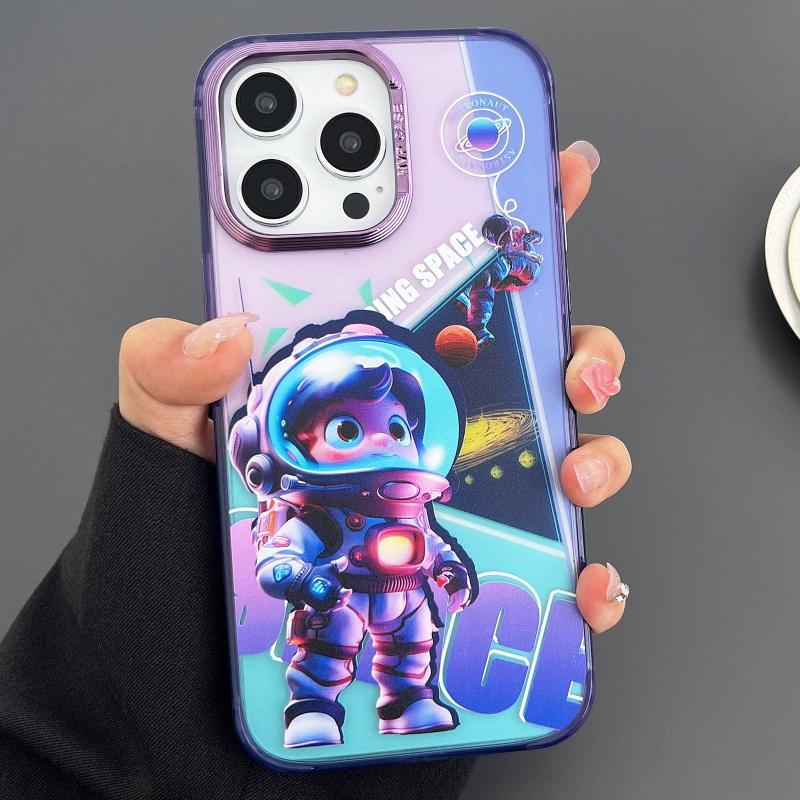 For iPhone 12 Pro Engraved Colorful Astronaut Phone Case(Small Purple)