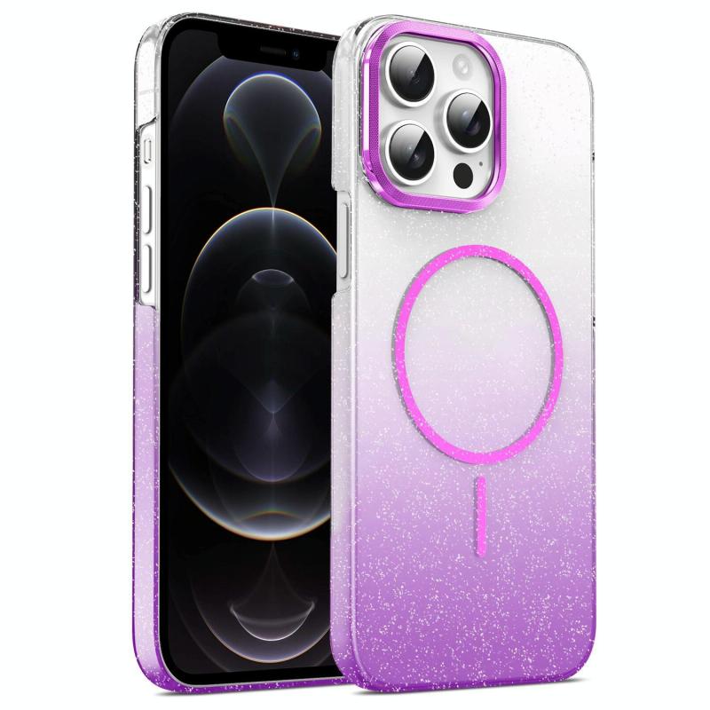 For iPhone 12 Pro Gold Diamond Glitter Gradient MagSafe Shockproof Phone Case(Purple)