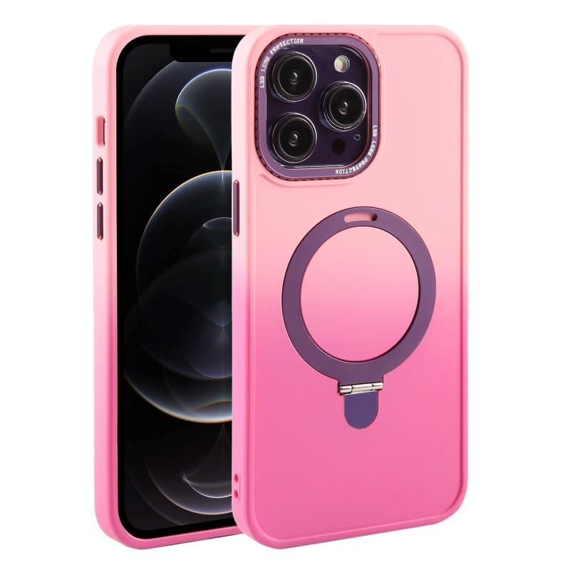 For iPhone 12 Pro Gradient MagSafe Holder Liquid TPU Hybrid PC Phone Case(Pink Red)