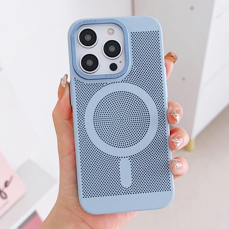 For iPhone 12 Pro Grid Cooling MagSafe Magnetic Phone Case(Sierra Blue)