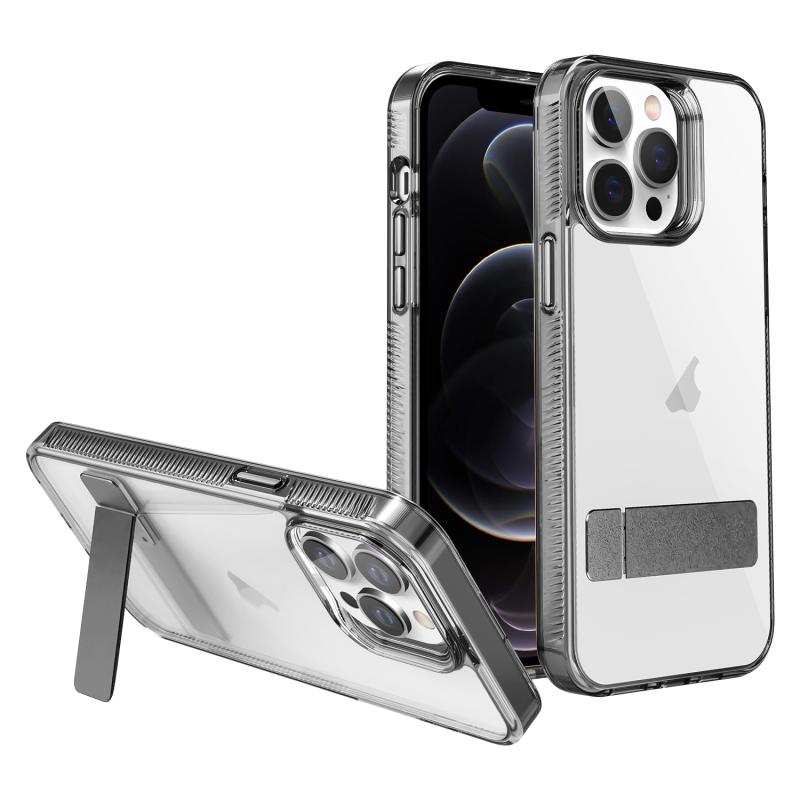 For iPhone 12 Pro High Transparent Holder Phone Case(Black)