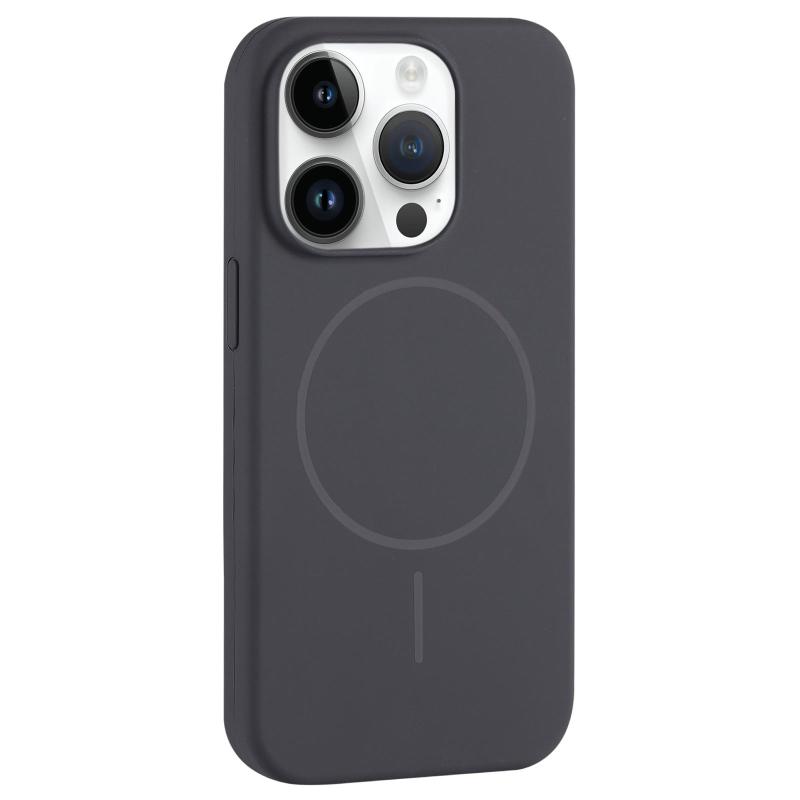 For iPhone 12 Pro Large Hole Camera MagSafe Liquid Silicone Full Coverage Phone Case(Carbon Gray Black)