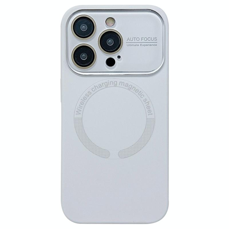 For iPhone 12 Pro Large Window Acrylic Glass Lens MagSafe Silicone Phone Case(White)