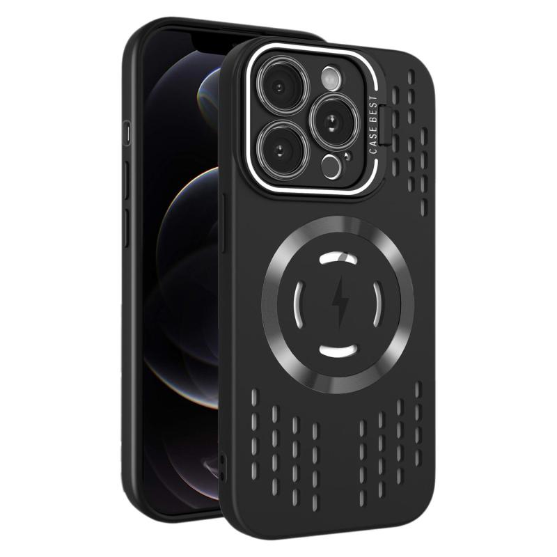 For iPhone 12 Pro Lens Holder MagSafe Cooling Phone Case(Black)