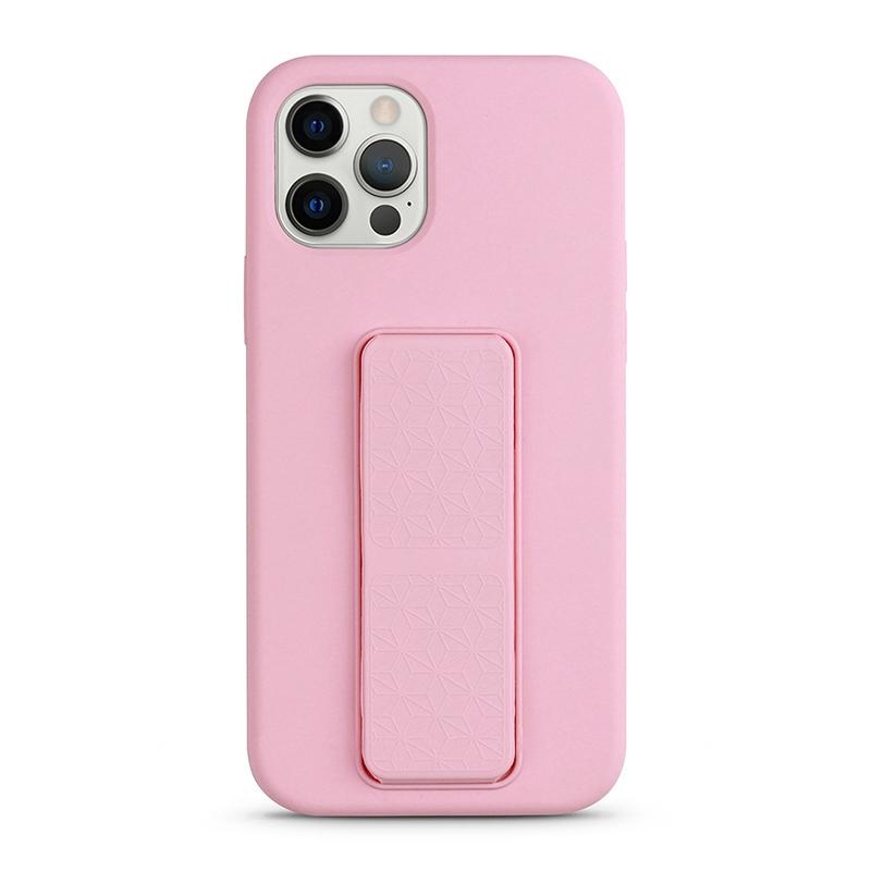 For iPhone 12 Pro Liquid Silicone Holder Phone Case(Pink)