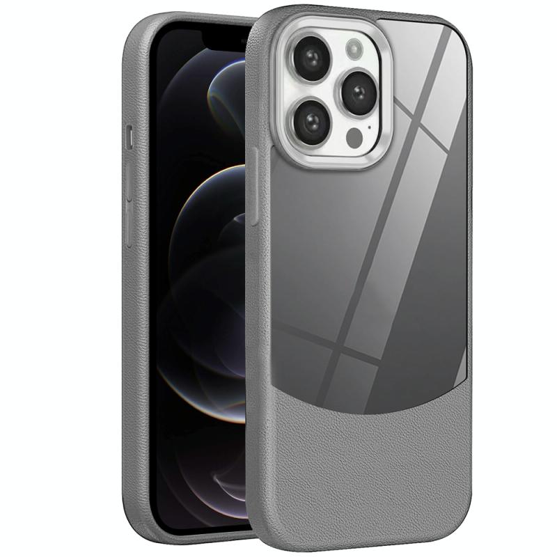 For iPhone 12 Pro Litchi Texture TPU Hybrid Acrylic Phone Case(Grey)