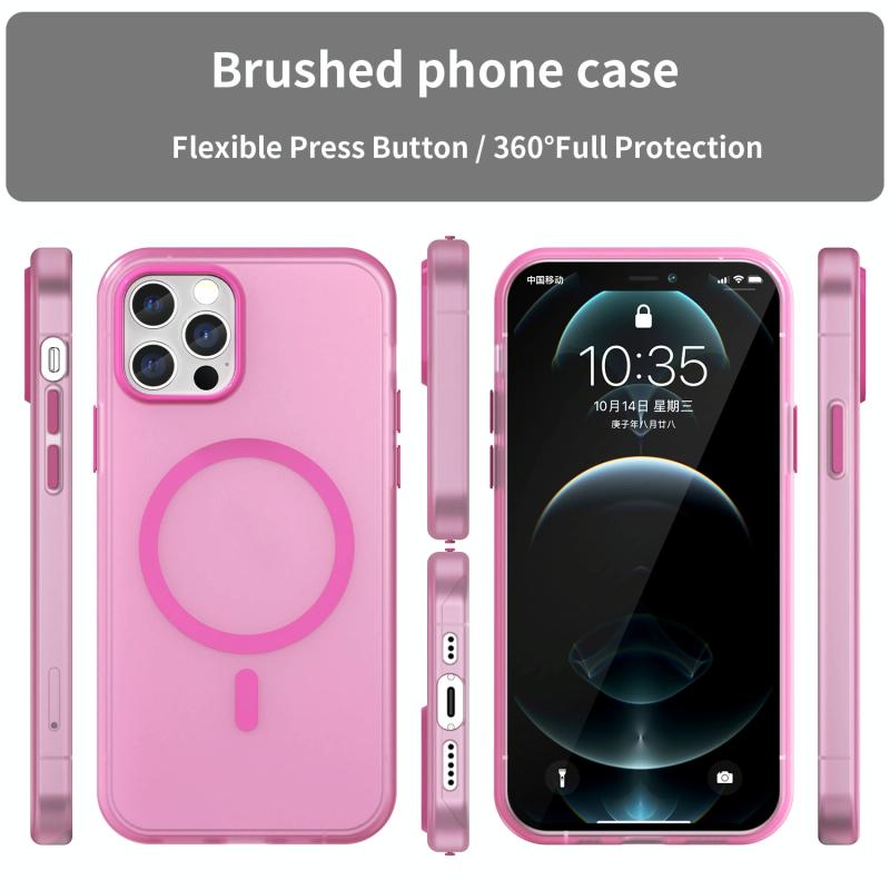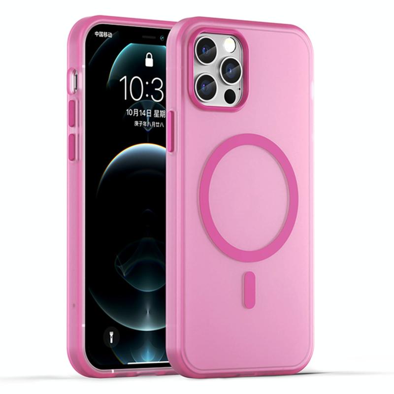For iPhone 12 Pro MagSafe Frosted Translucent TPU + PC Full Coverage Phone Case(Pink)