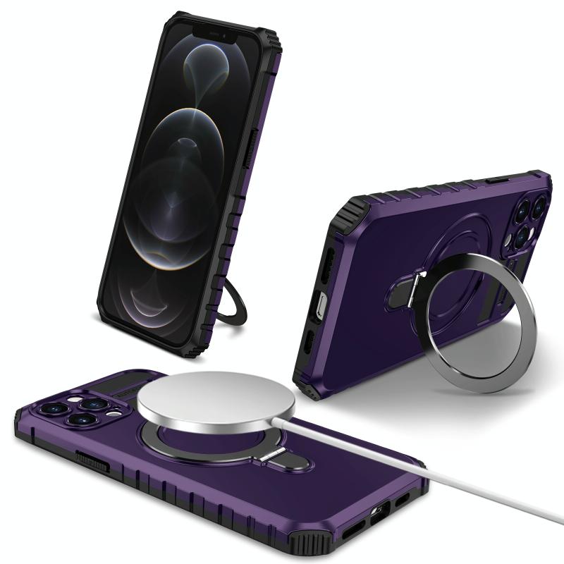 For iPhone 12 Pro MagSafe Magnetic Holder Phone Case(Purple)