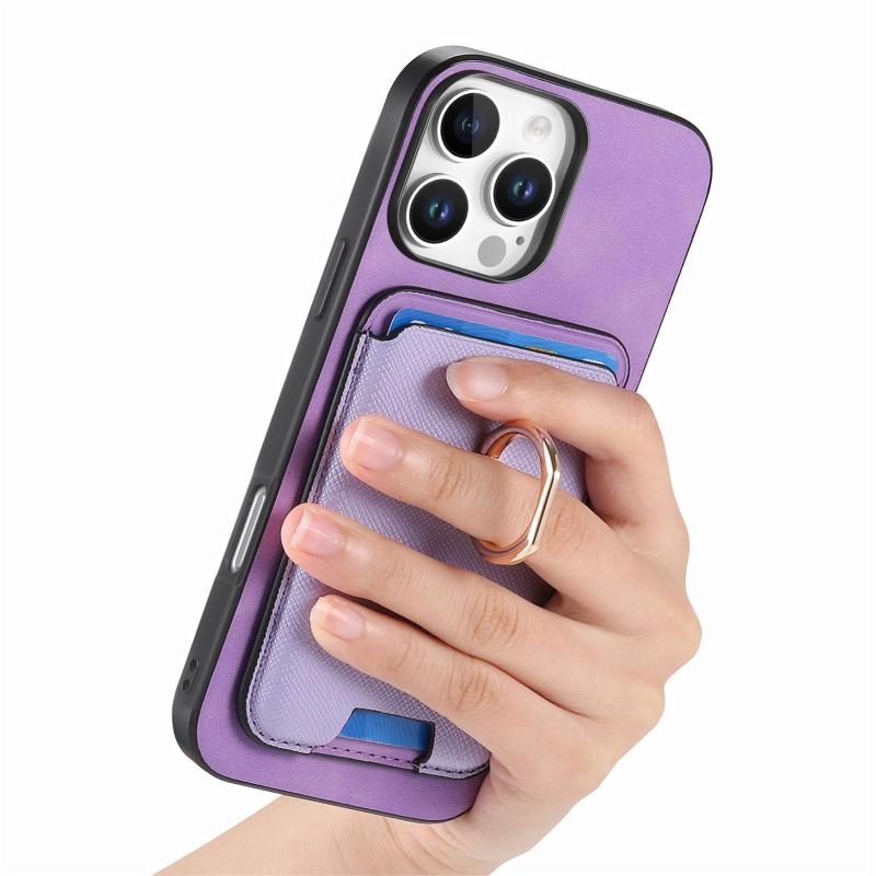 For iPhone 12 Pro Max Retro Cross Leather Card Bag MagSafe Phone Case(Purple)