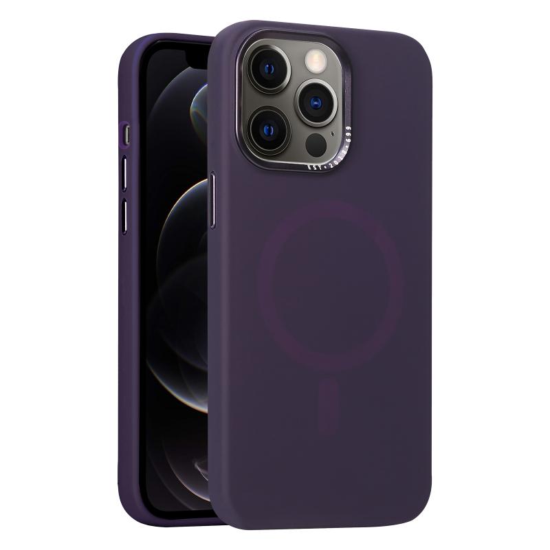 For iPhone 12 Pro Metal Lens Frame Liquid Silicone MagSafe Phone Case(Deep Purple)