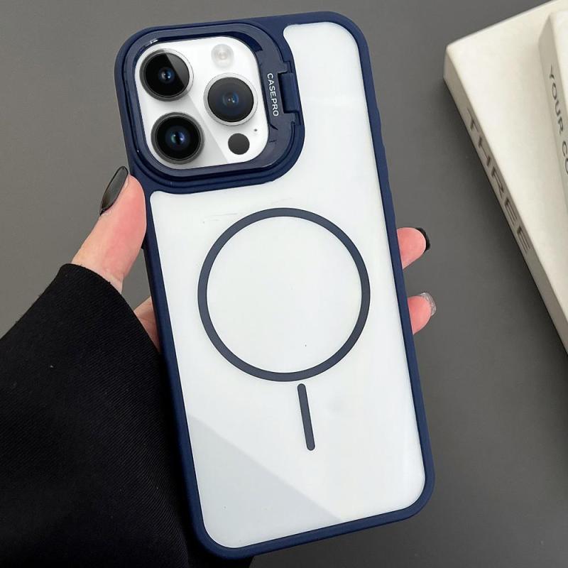 For iPhone 12 Pro PC Lens Holder MagSafe Magnetic Phone Case(Blue)