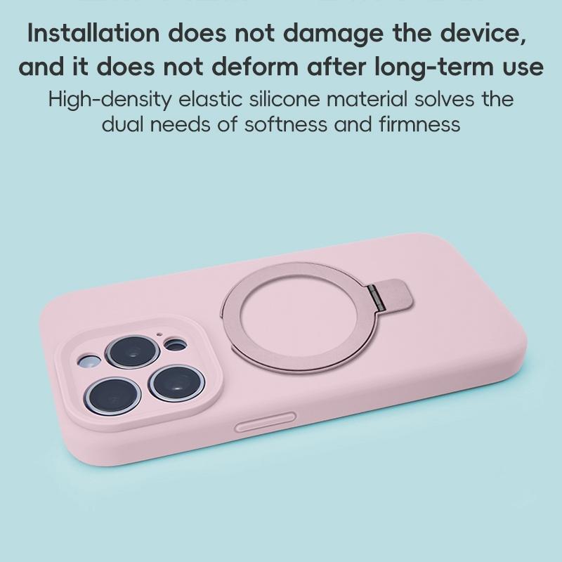For iPhone 12 Pro Precision Hole Liquid Silicone MagSafe Metal Ring Holder Phone Case(Pink)