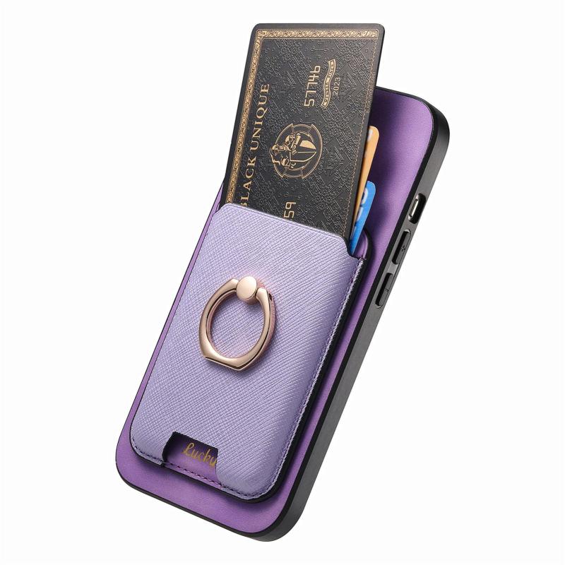 For iPhone 12 Pro Retro Cross Leather Card Bag MagSafe Phone Case(Purple)