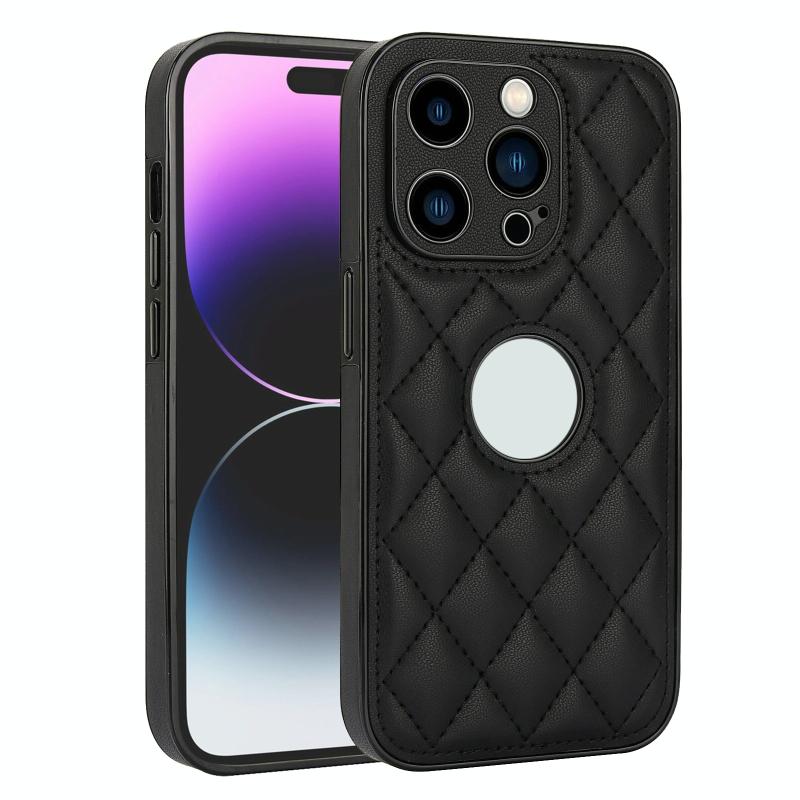 For iPhone 12 Pro Rhombic Leather Back Cover Phone Case(Black)
