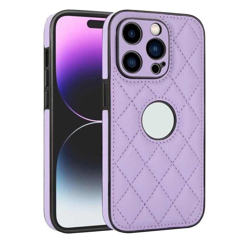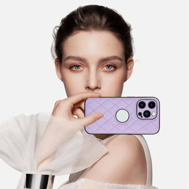 For iPhone 12 Pro Rhombic Leather Back Cover Phone Case(Purple)