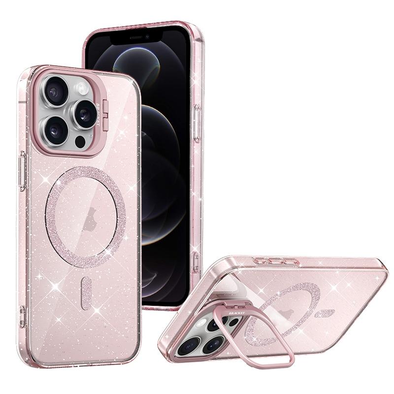 For iPhone 12 Pro Shiny Shield MagSafe Lens Holder Phone Case(Pink)