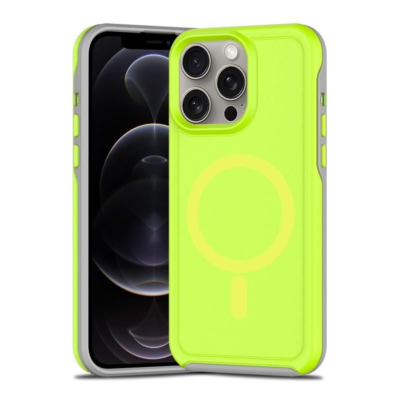 For iPhone 12 Pro Shockproof MagSafe Armor PC Hybrid TPU Phone Case(Fluorescent Green+Gray)