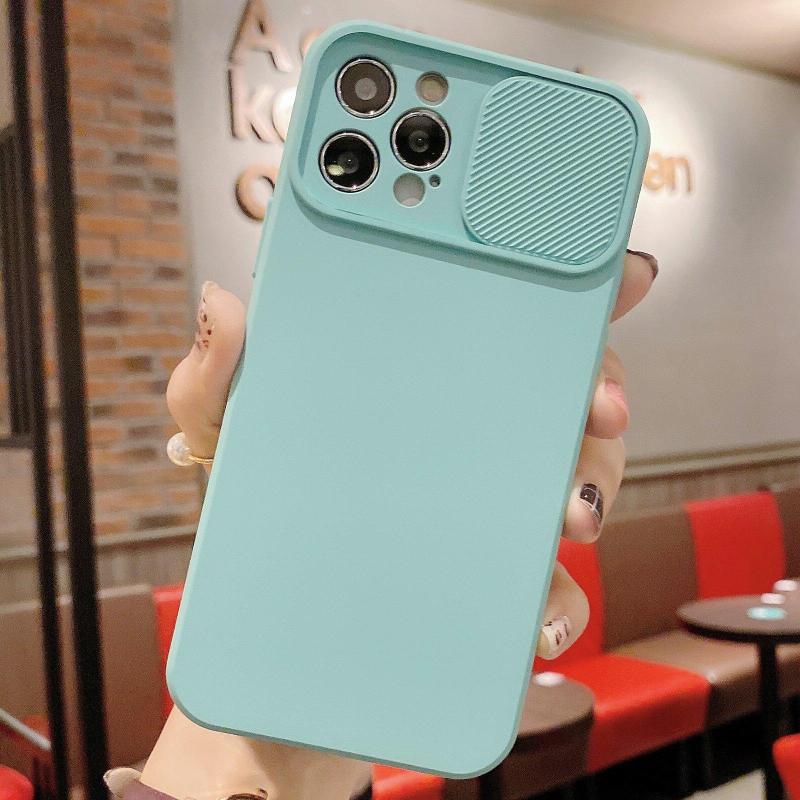 For iPhone 12 Pro Slid Camera Shield Liquid Silicone TPU Phone Case(Ice Blue)