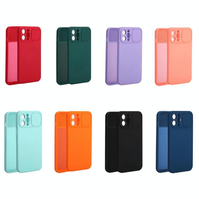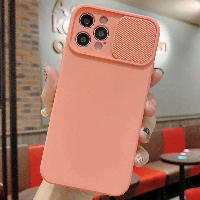 For iPhone 12 Pro Slid Camera Shield Liquid Silicone TPU Phone Case(Pink Orange)