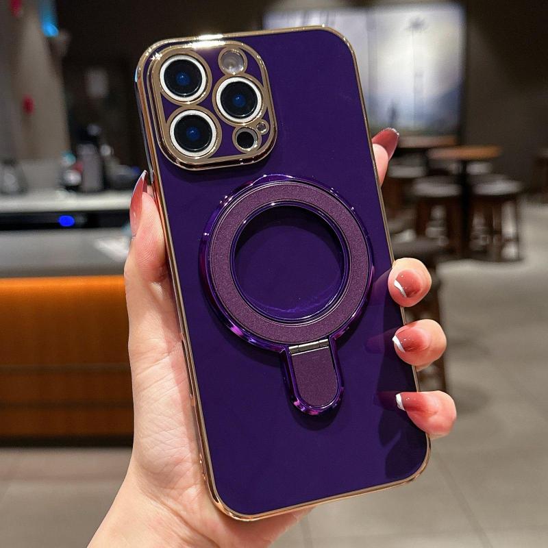 For iPhone 12 Pro Solid Color Electroplated Metal Holder Phone Case(Dark Purple)