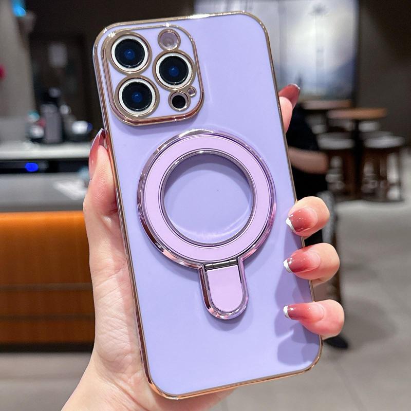 For iPhone 12 Pro Solid Color Electroplated Metal Holder Phone Case(Light Purple)