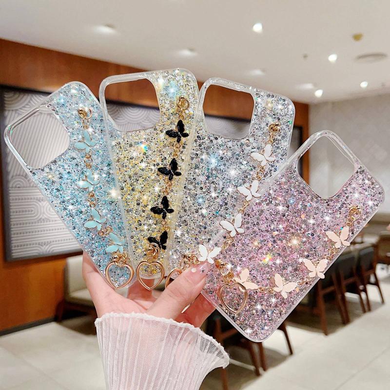 For iPhone 12 Pro Starry Sequin Butterfly Chain Epoxy TPU Phone Case(Yellow)