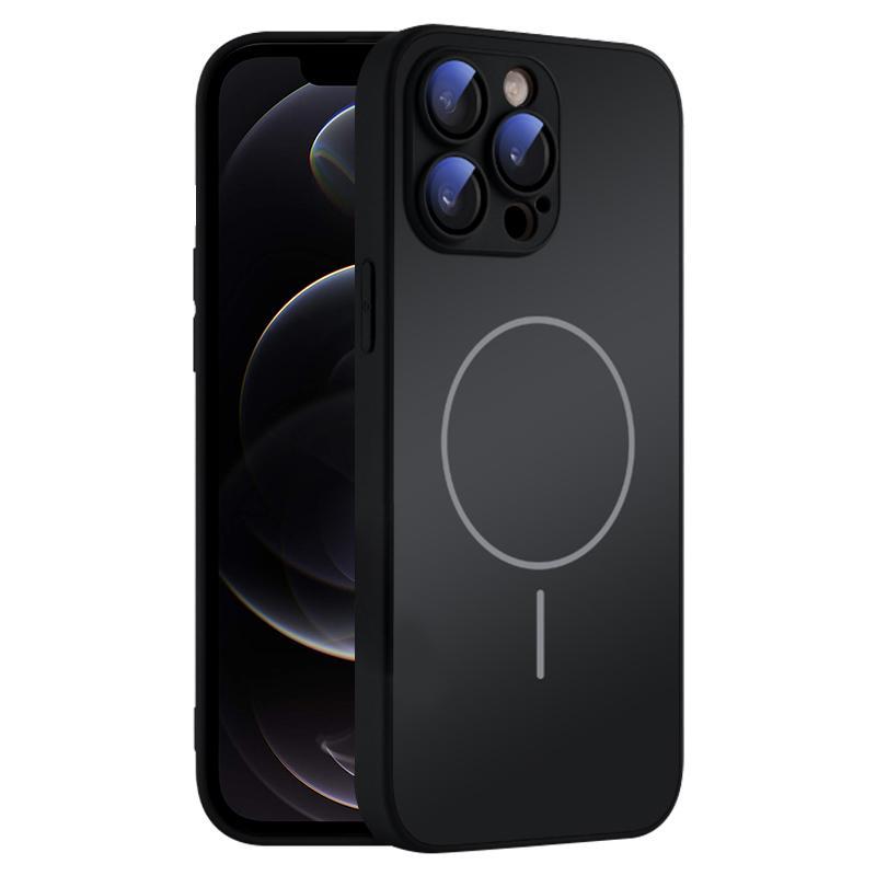 For iPhone 12 Pro Thin Circle MagSafe Skin-feel AG Glass Phone Case(Black)