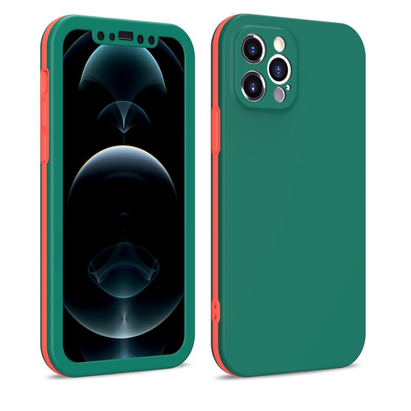 For iPhone 12 Pro Two Color Full Protective 3-in-1 Phone Case(Dark Green)