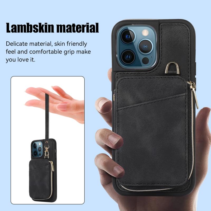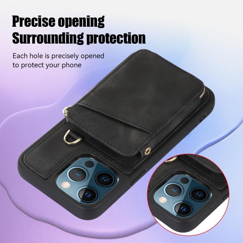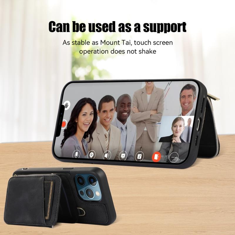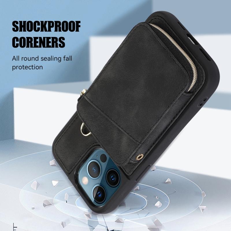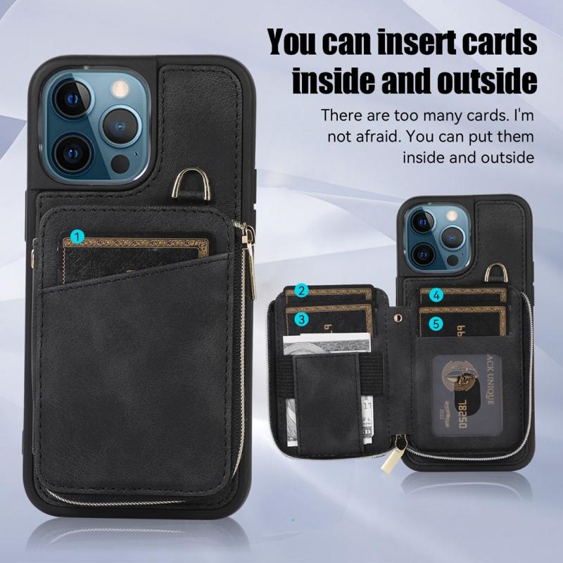 For iPhone 12 Pro Zipper Card Bag Back Cover Phone Case(Black)