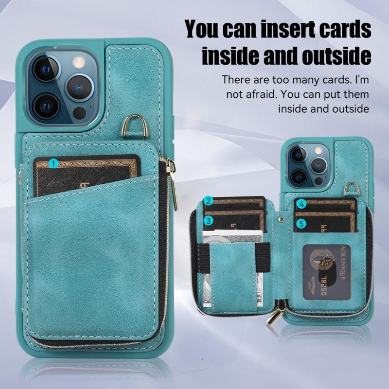 For iPhone 12 Pro Zipper Card Bag Back Cover Phone Case(Turquoise)