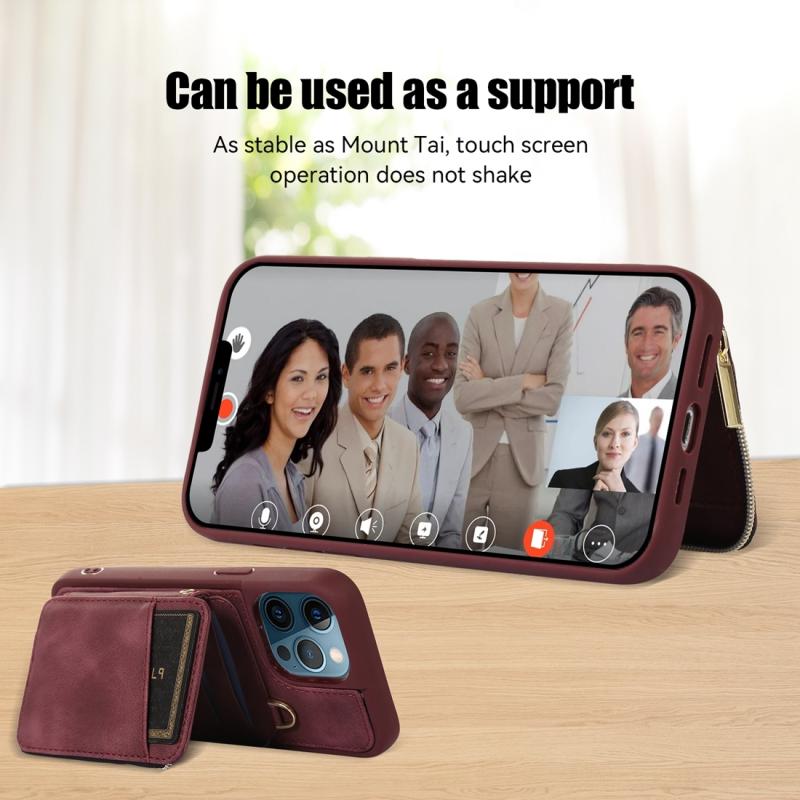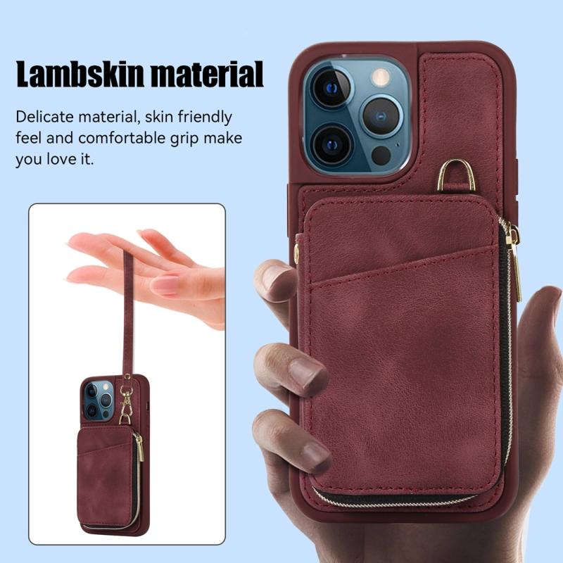 For iPhone 12 Pro Zipper Card Bag Back Cover Phone Case(Wine Red)