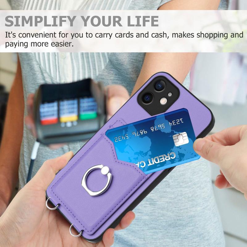 For iPhone 12 R20 Ring Card Holder Phone Case(Purple)