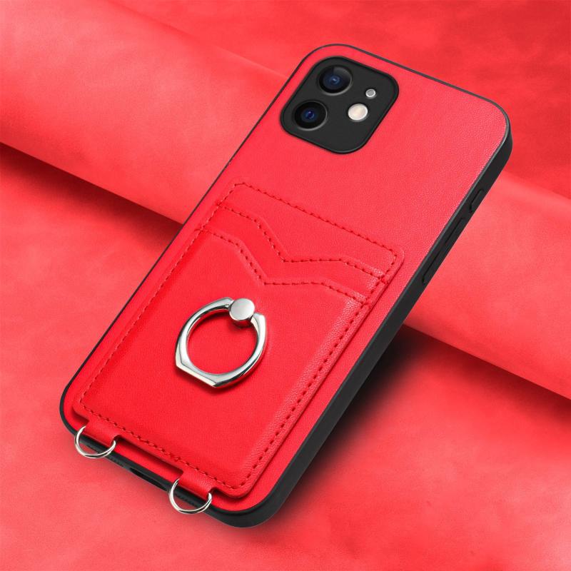 For iPhone 12 R20 Ring Card Holder Phone Case(Red)