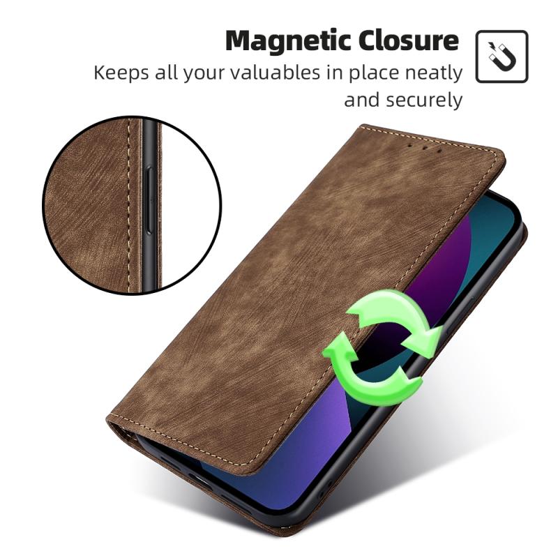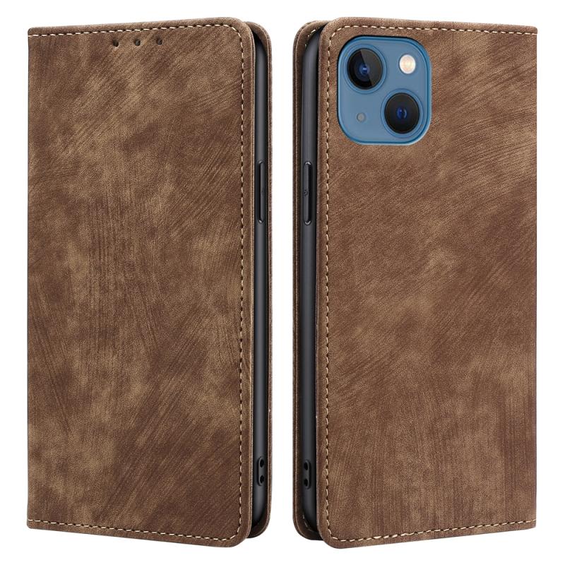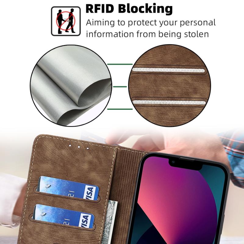 For iPhone 12 RFID Anti-theft Brush Magnetic Leather Phone Case(Brown)