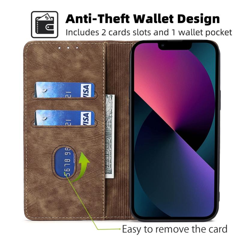 1. PU leather: The phone case is hand-made with selected PU leather and soft TPU inner shell, which brings a comfortable touch and protects your phone in all aspects.