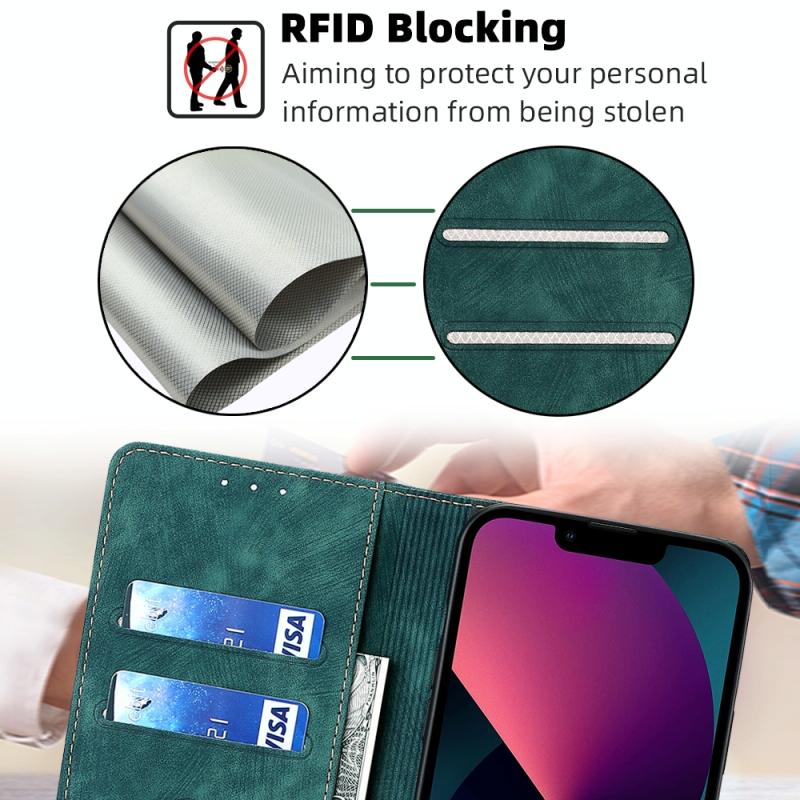 For iPhone 12 RFID Anti-theft Brush Magnetic Leather Phone Case(Green)