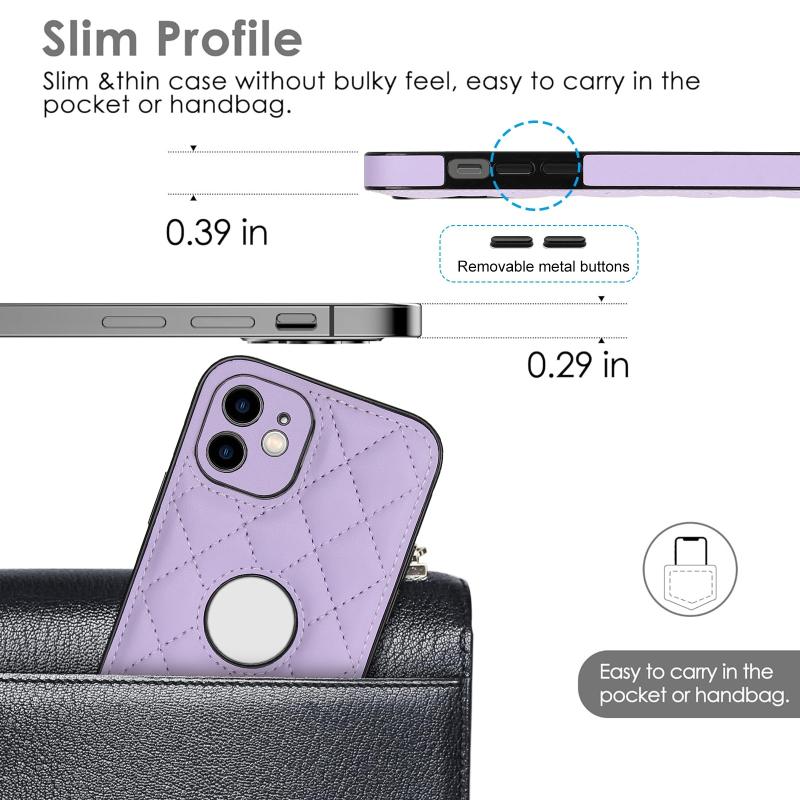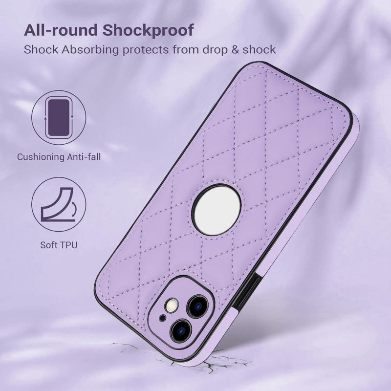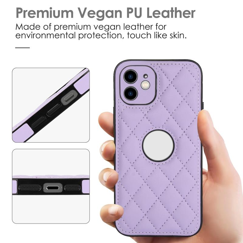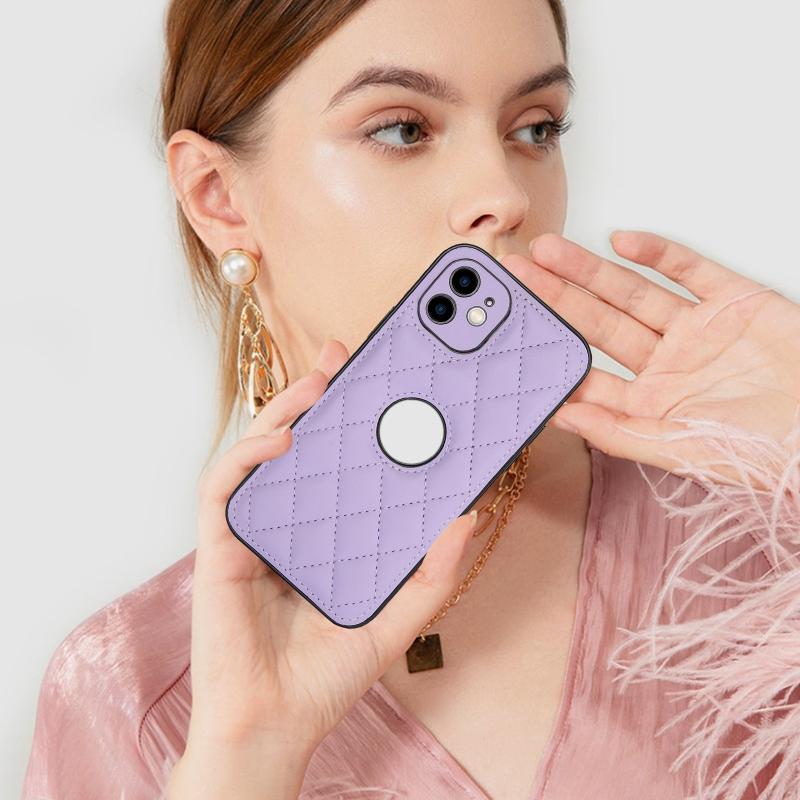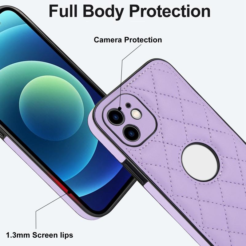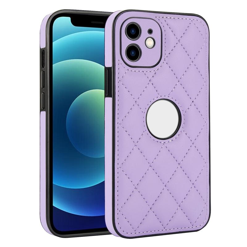 For iPhone 12 Rhombic Leather Back Cover Phone Case(Purple)