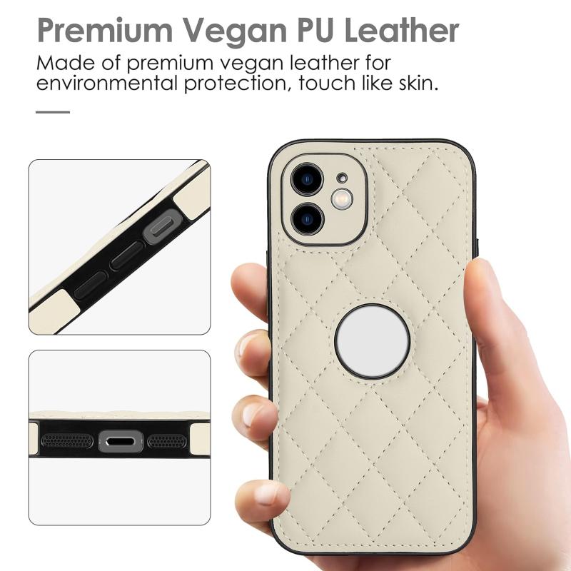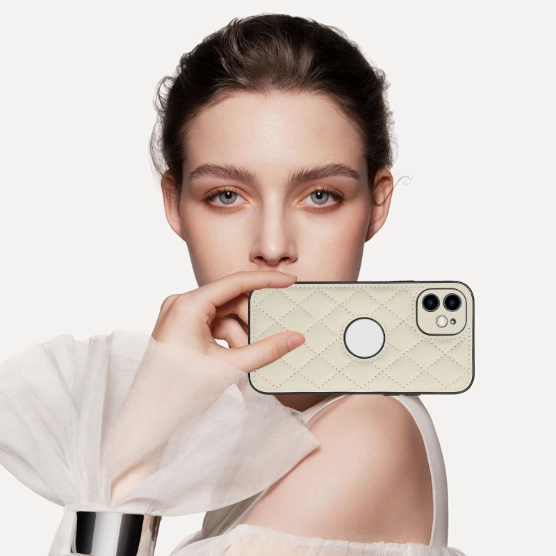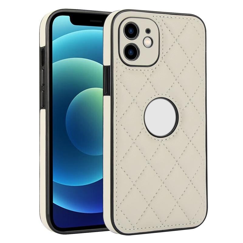For iPhone 12 Rhombic Leather Back Cover Phone Case(White)