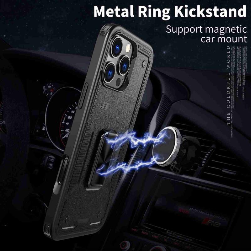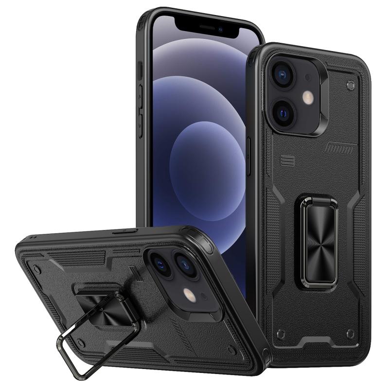 For iPhone 12 Ring Holder PC Hybrid TPU Phone Case(Black)