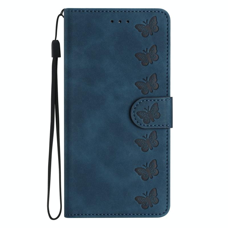 For iPhone 12 Seven Butterflies Embossed Leather Phone Case(Blue)