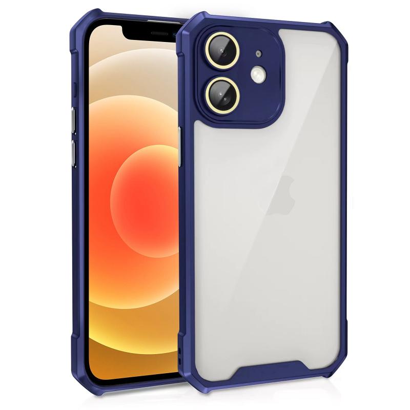 For iPhone 12 Shockproof Acrylic Phone Case with Lens Glass Film(Blue)