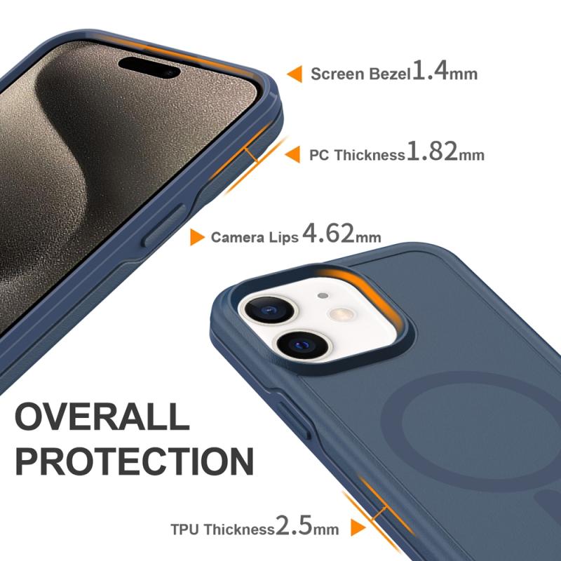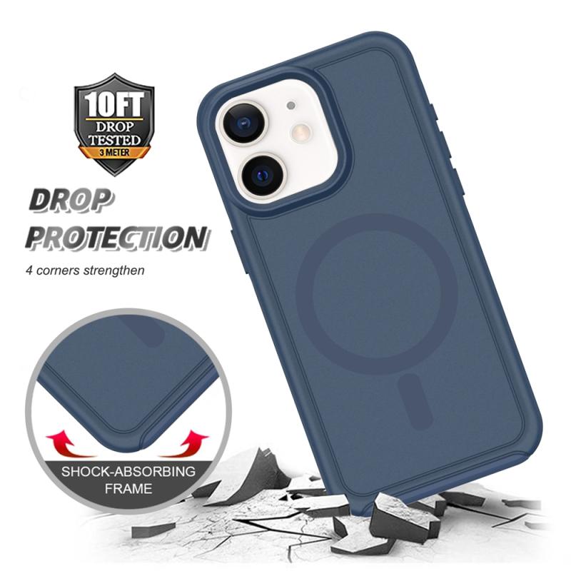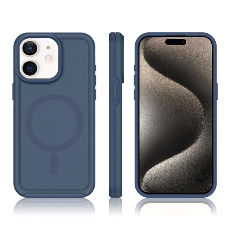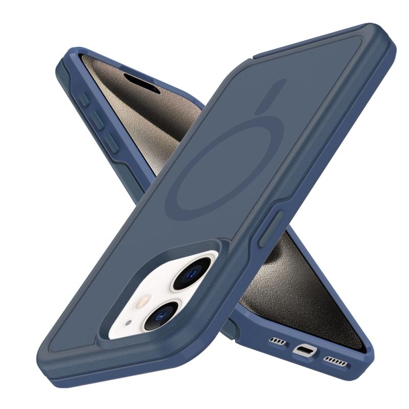 For iPhone 12 Shockproof MagSafe Armor PC Hybrid TPU Phone Case(Ink Blue)