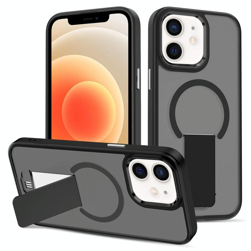 For iPhone 12 Skin Feel Invisible Kickstand MagSafe Phone Case(Black)