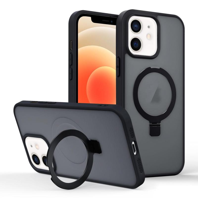 For iPhone 12 Skin-feel Ring MagSafe Holder Phone Case(Black)