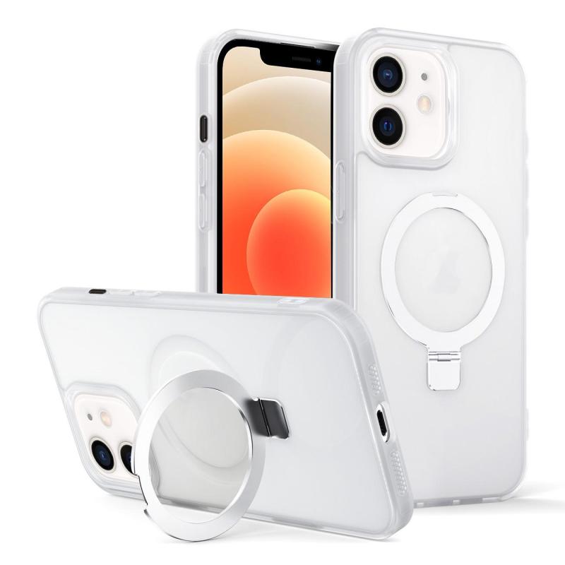 For iPhone 12 Skin-feel Ring MagSafe Holder Phone Case(Transparent White)