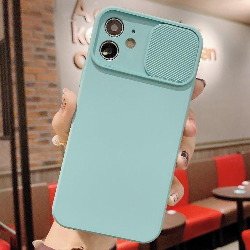 For iPhone 12 Slid Camera Shield Liquid Silicone TPU Phone Case(Ice Blue)