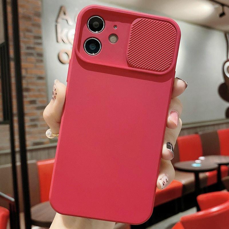 For iPhone 12 Slid Camera Shield Liquid Silicone TPU Phone Case(Red)