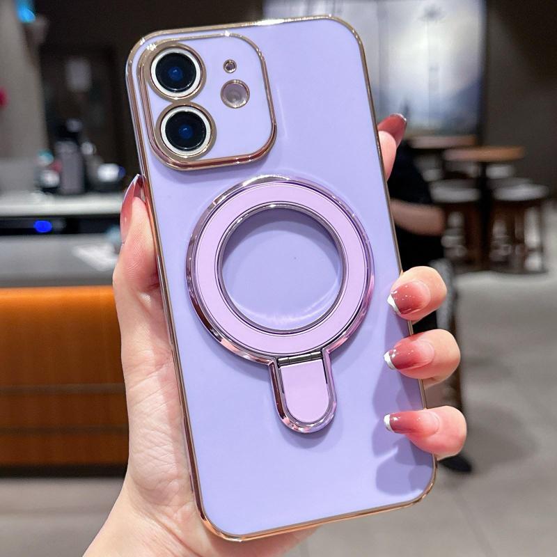 For iPhone 12 Solid Color Electroplated Metal Holder Phone Case(Light Purple)
